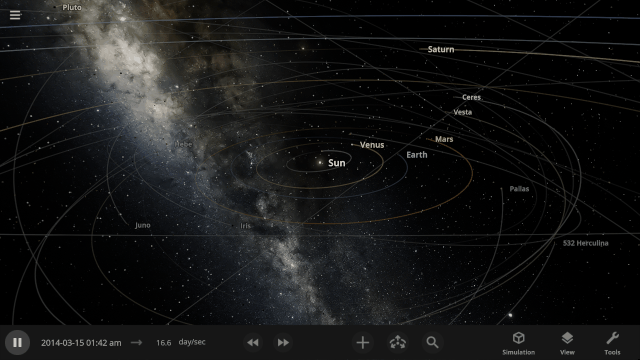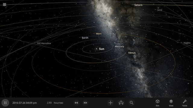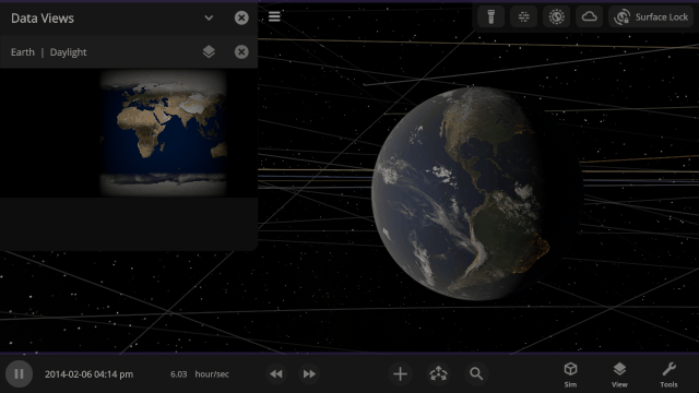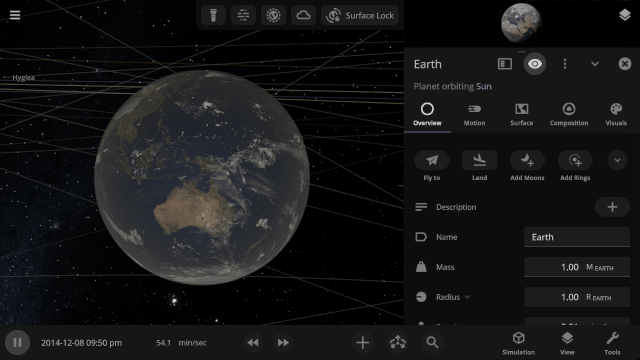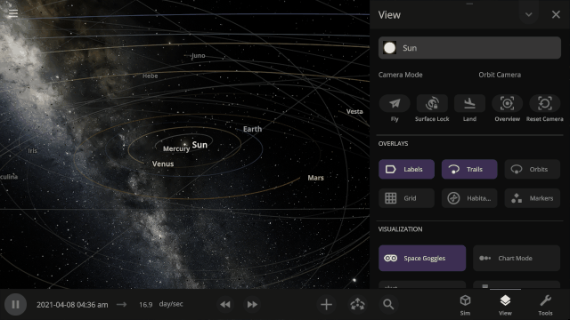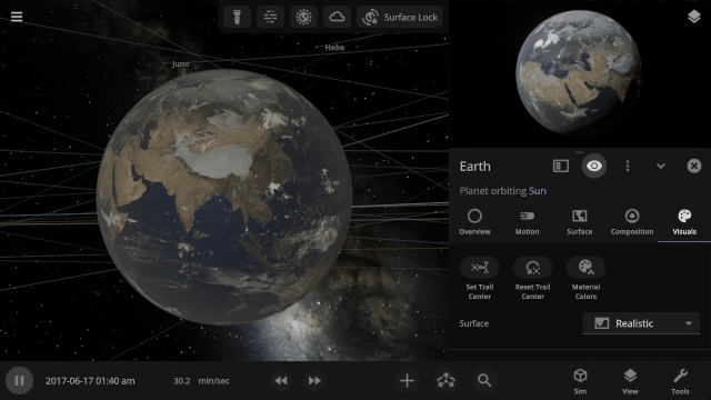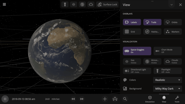 More accessible View toggles make it easy to turn on surface lock, illuminate the dark side of planets, or toggle the visibility of atmospheres and clouds.