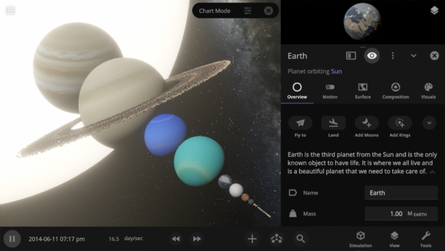 Add rich details to any object and the simulation itself with the new description properties. Include your favorite facts about each planet in the Solar System, or give a detailed backstory to your custom Tatooine! Add them under