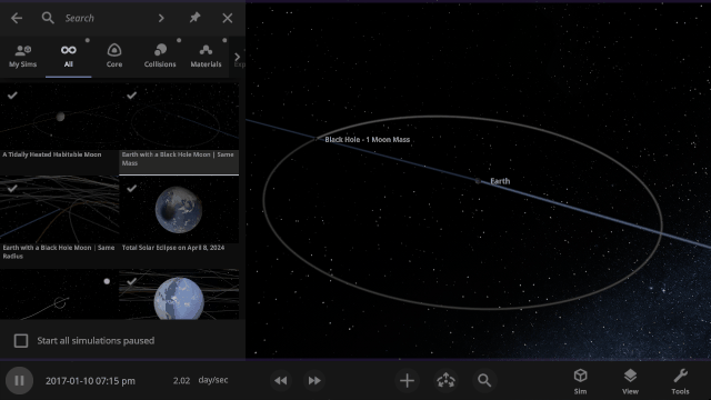 Pick up where you left off and have Universe Sandbox open your most recent save, your own custom work in progress, or any of our included simulations when it starts up. Set this under